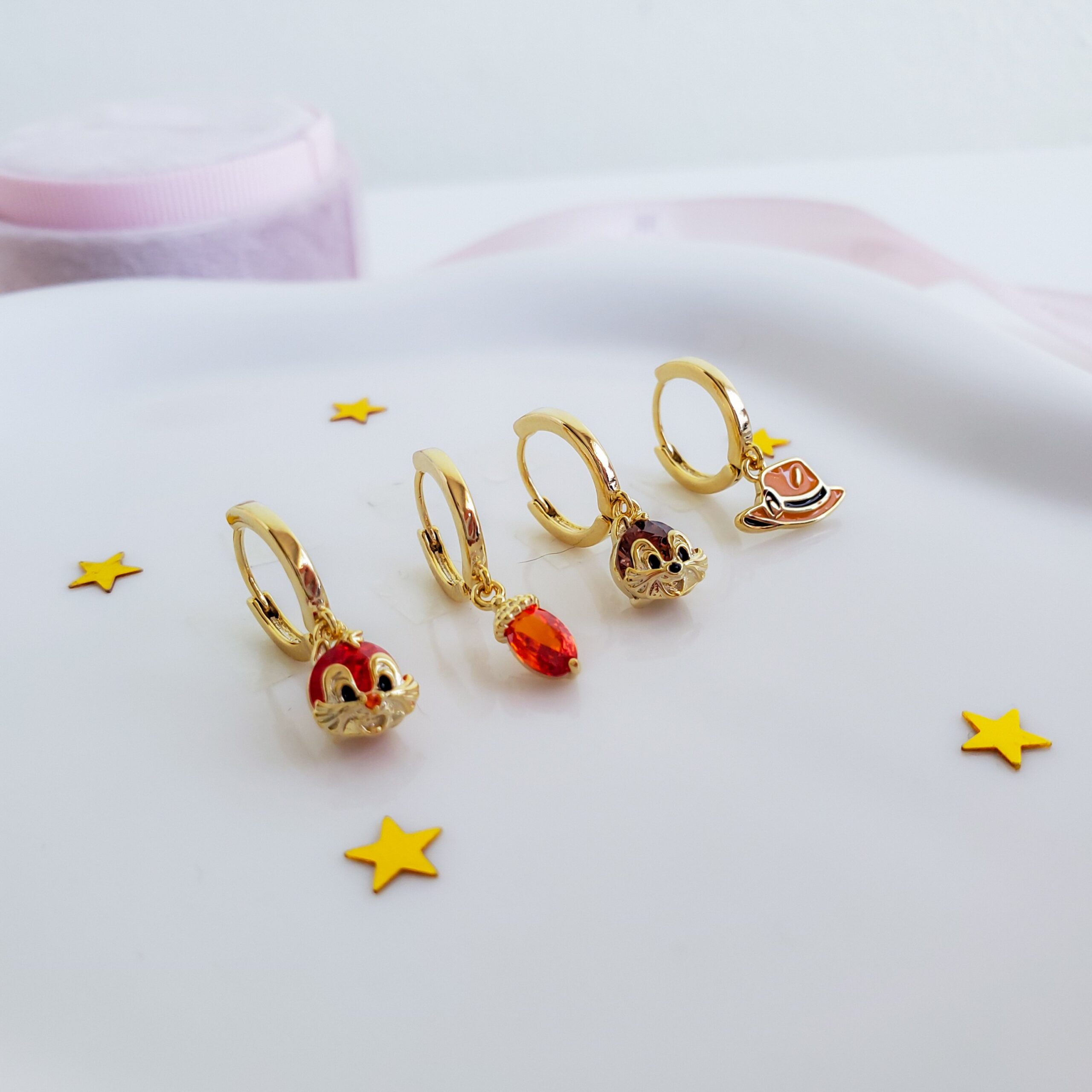 Celebrate the eternal bond of Disney’s favorite chipmunks with this beautiful earring set. A charming, nostalgic, and fresh set all at once. Wear these earrings to keep the mischief and fun close.