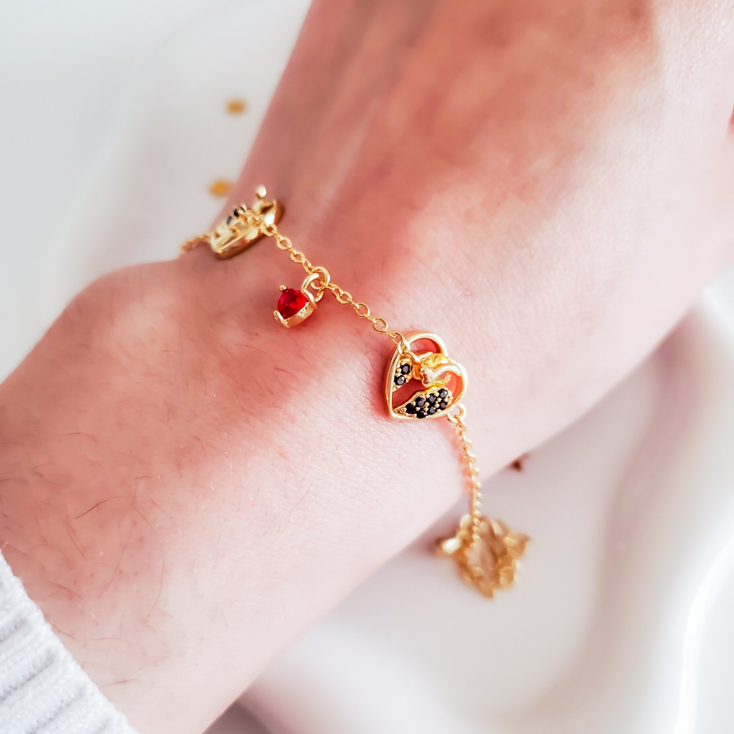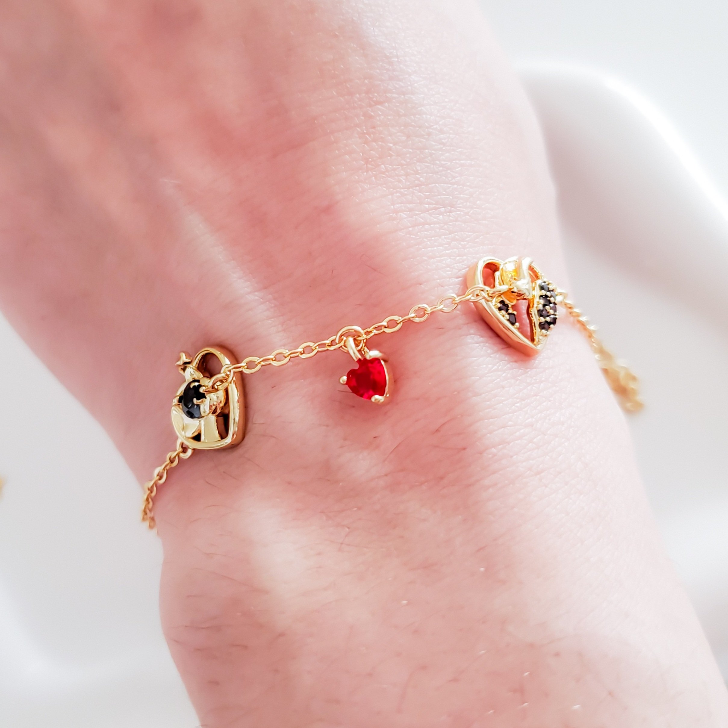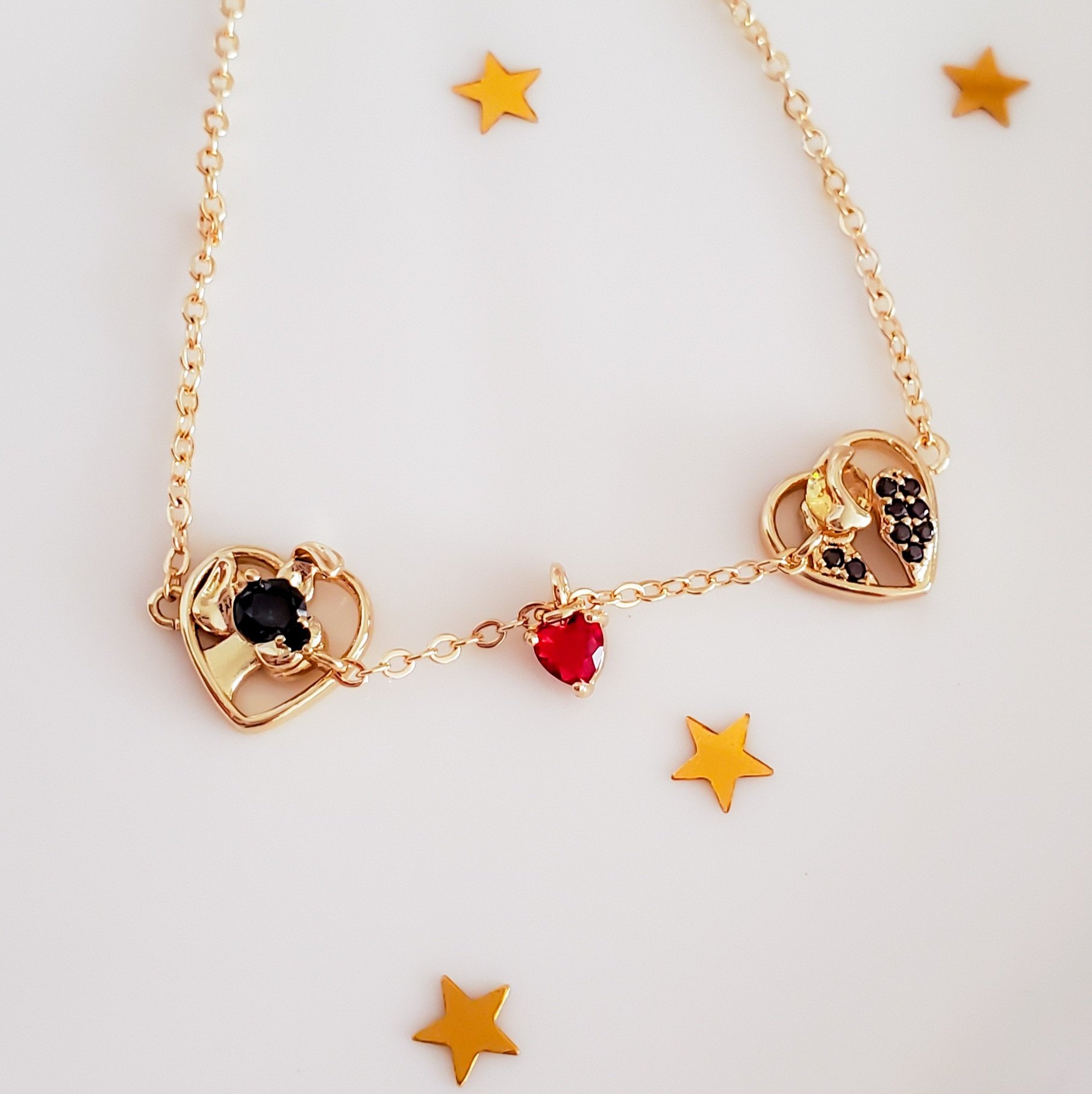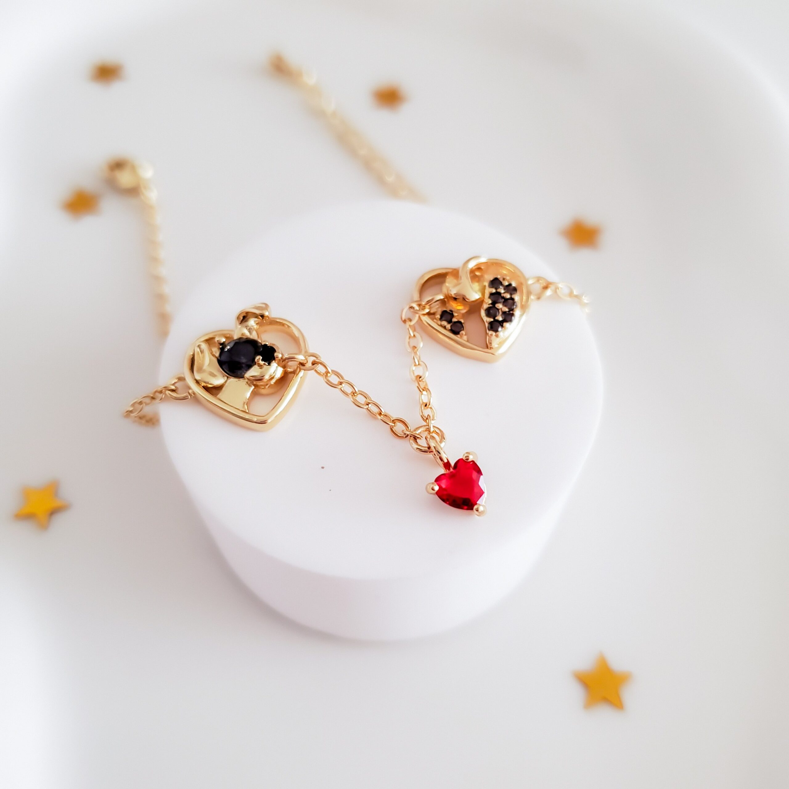 Experience love like never before with our Disney Lady and the Tramp Bracelet. Celebrate the timeless love story of Lady and the Tramp with this beautifully crafted bracelet. Featuring a unique chain design that connects the iconic duo, this piece symbolizes the bond between two souls with a heart charm adds a touch of romance, making it a perfect accessory for dog lovers and hopeless romantics alike.