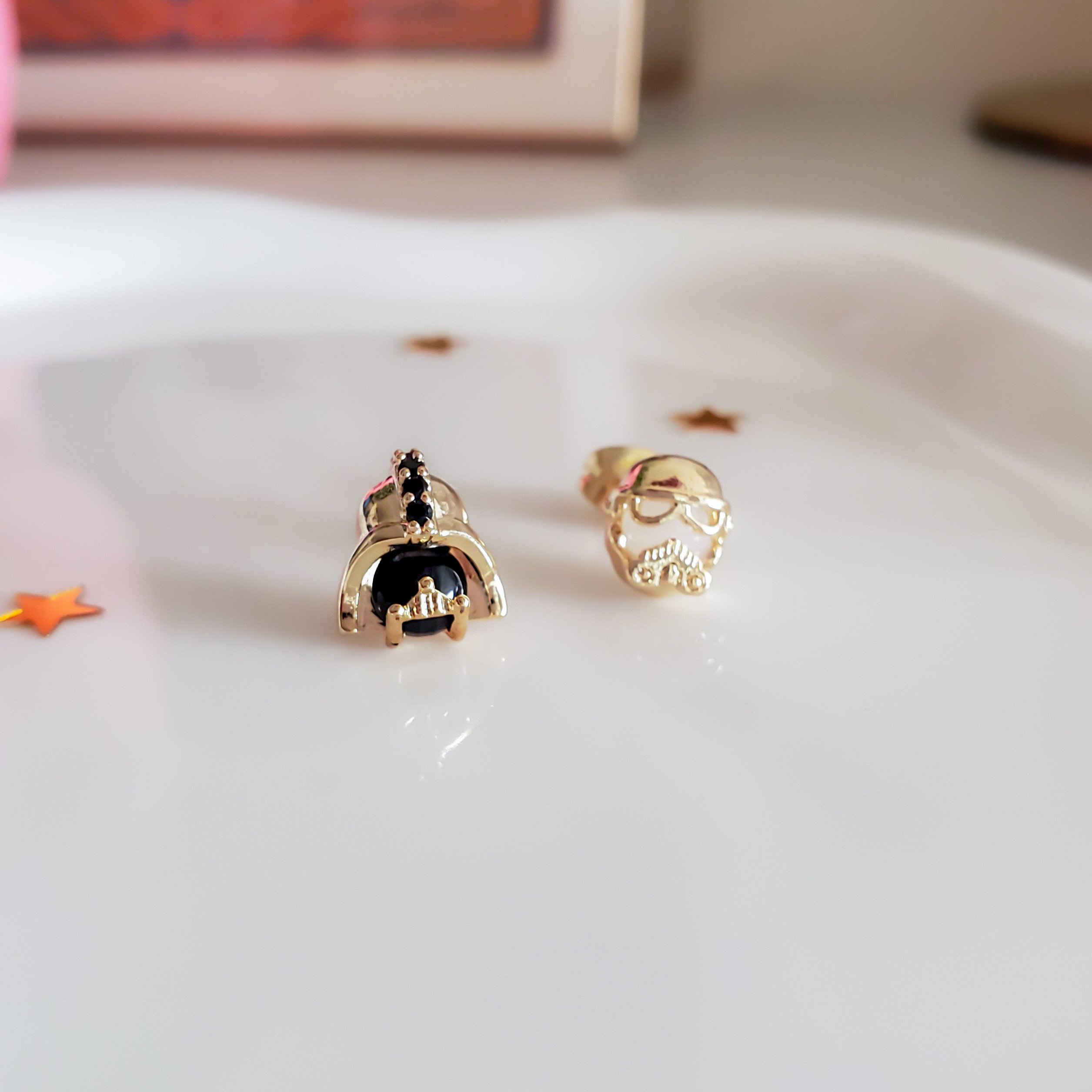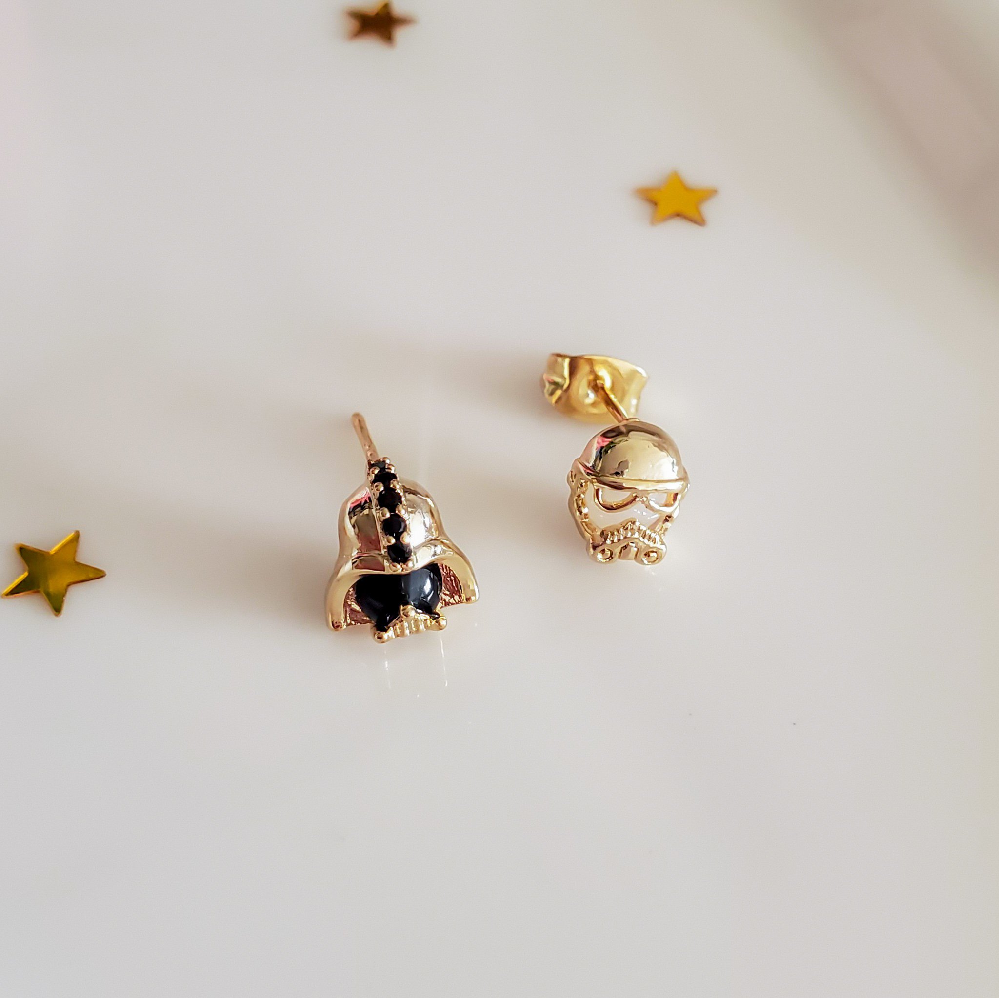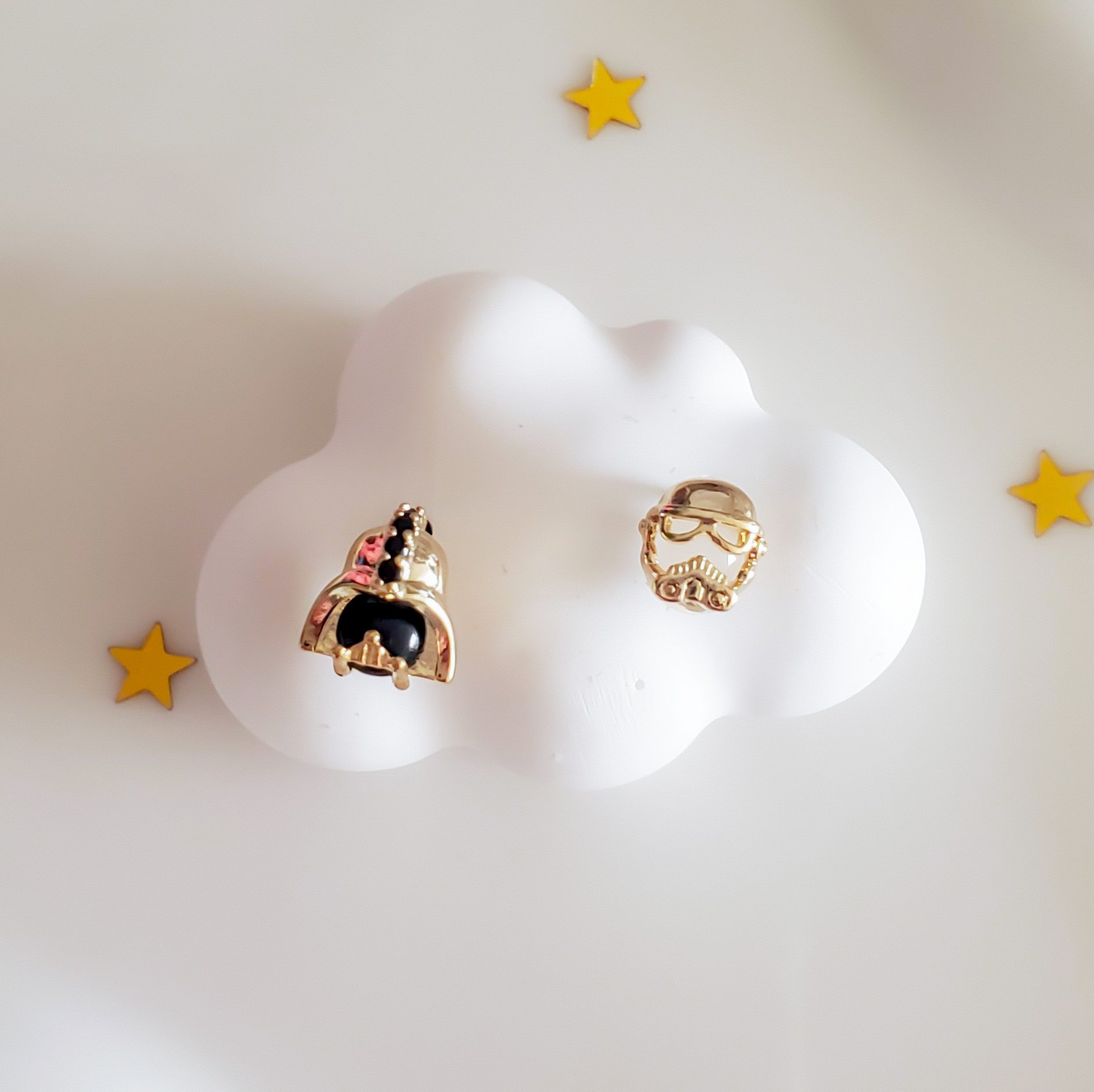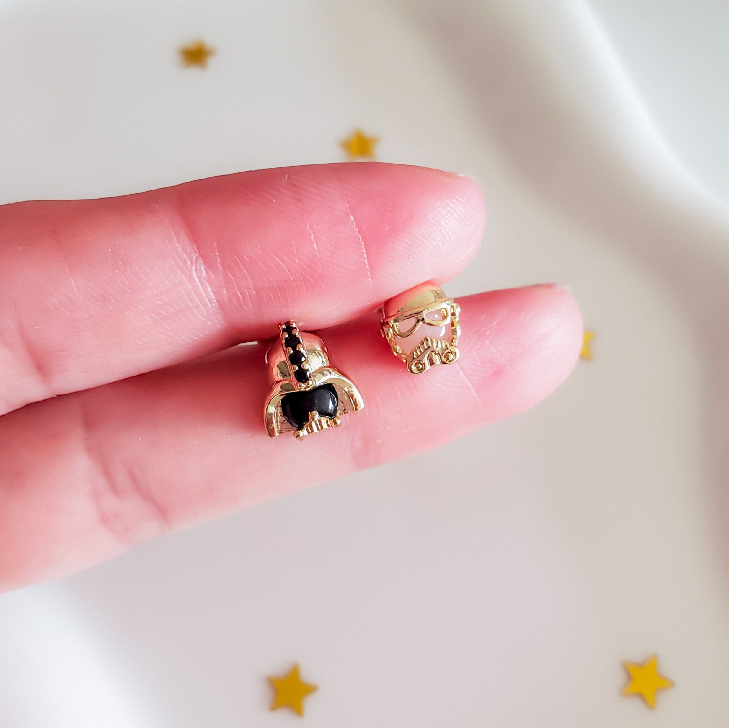 Embrace the power of the Dark Side with these stud earrings. The bold gunmetal in this set evokes immense power and reminds us that without darkness, there can be no light.